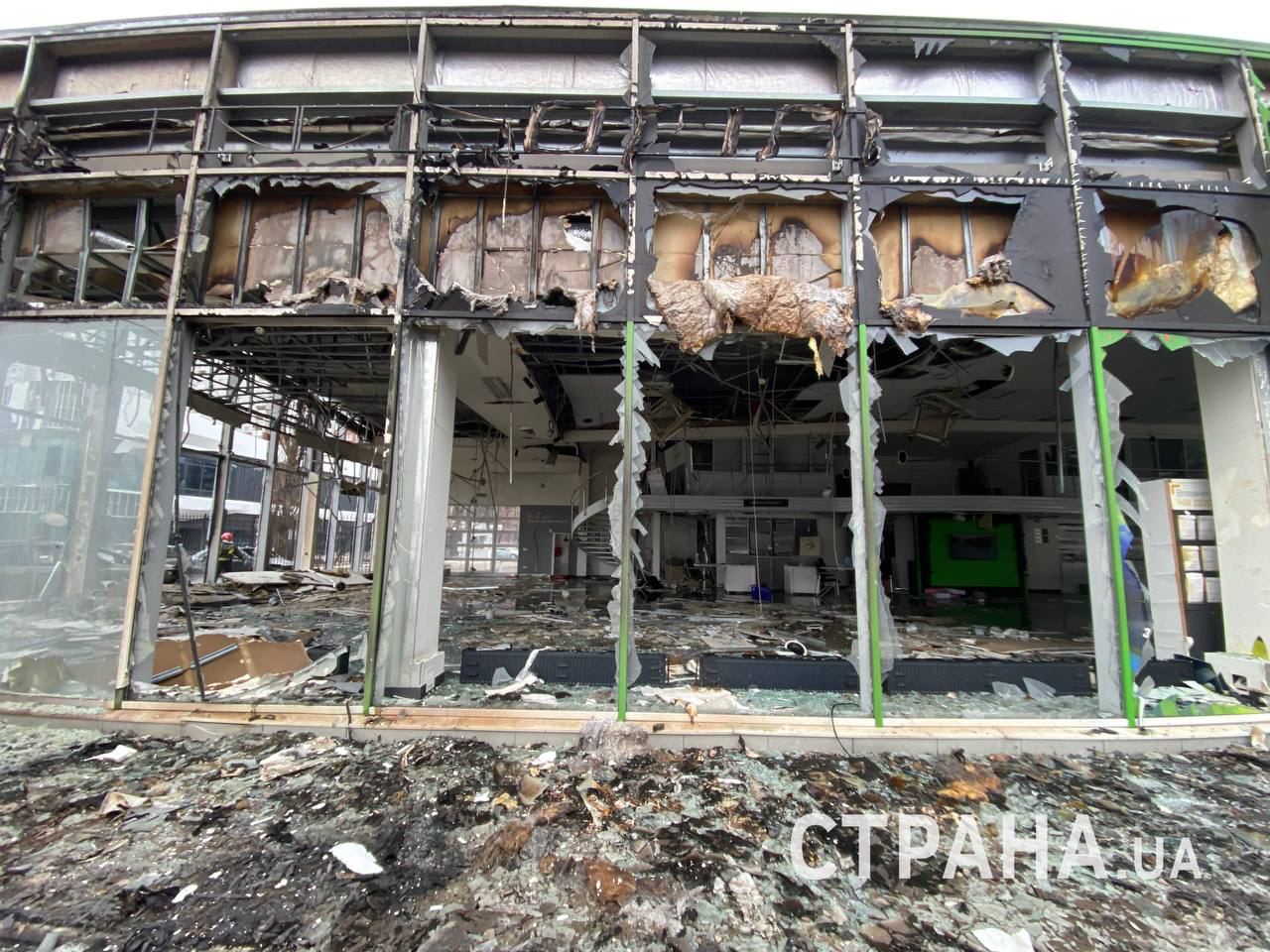 - в Святошинском попадании в здание социальной инфраструктуры.
