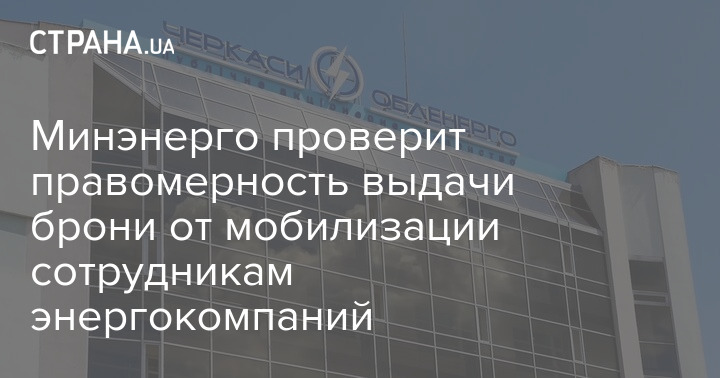 Украинских энергетиков проверят на правомерность выдачи брони от мобилизации.