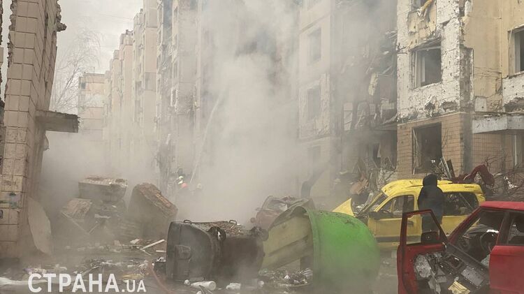 Мы публиковали фото последствий атаки по Соломенскому району Киева. Дом получил значительные повреждения: разрушены многие балконы, выбиты все окна. Также водой затопило целую улицу.