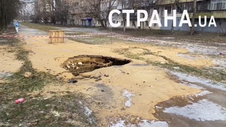 "Страна" побывала на месте прорыва трубы и затопления улицы на Борщаговке в Киеве. Фото и видео