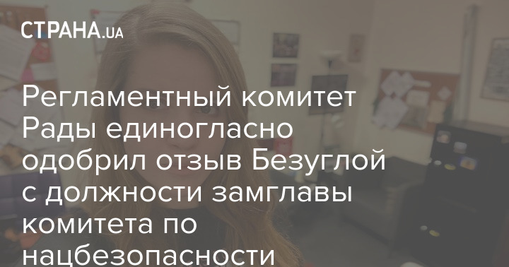 Сегодня, 8 января, комитет по вопросам регламента Верховной Рады единогласно одобрил отзыв Марьяны Безуглой с должности замглавы комитета по вопросам нацбезопасности и обороны.