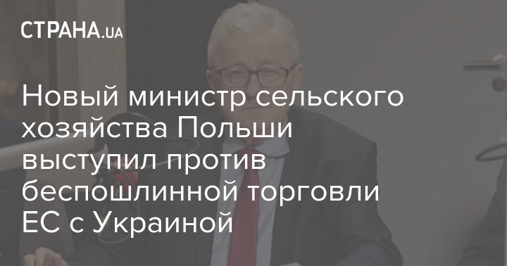 Новый министр сельского хозяйства Польши Чеслав Секерский выступил "принципиально против" продолжения беспошлинной торговли с Украиной.