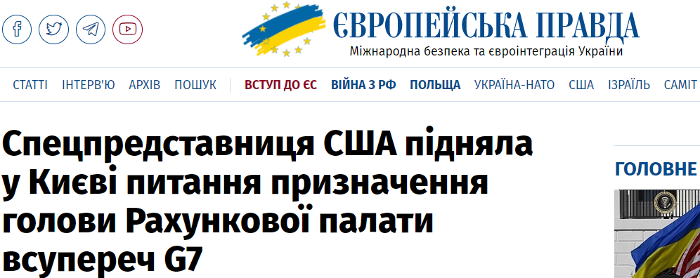 "Мы говорили (на официальных встречах) о Счетной палате", – заявила спецпредставитель США, которая сегодня приехала в Киев.