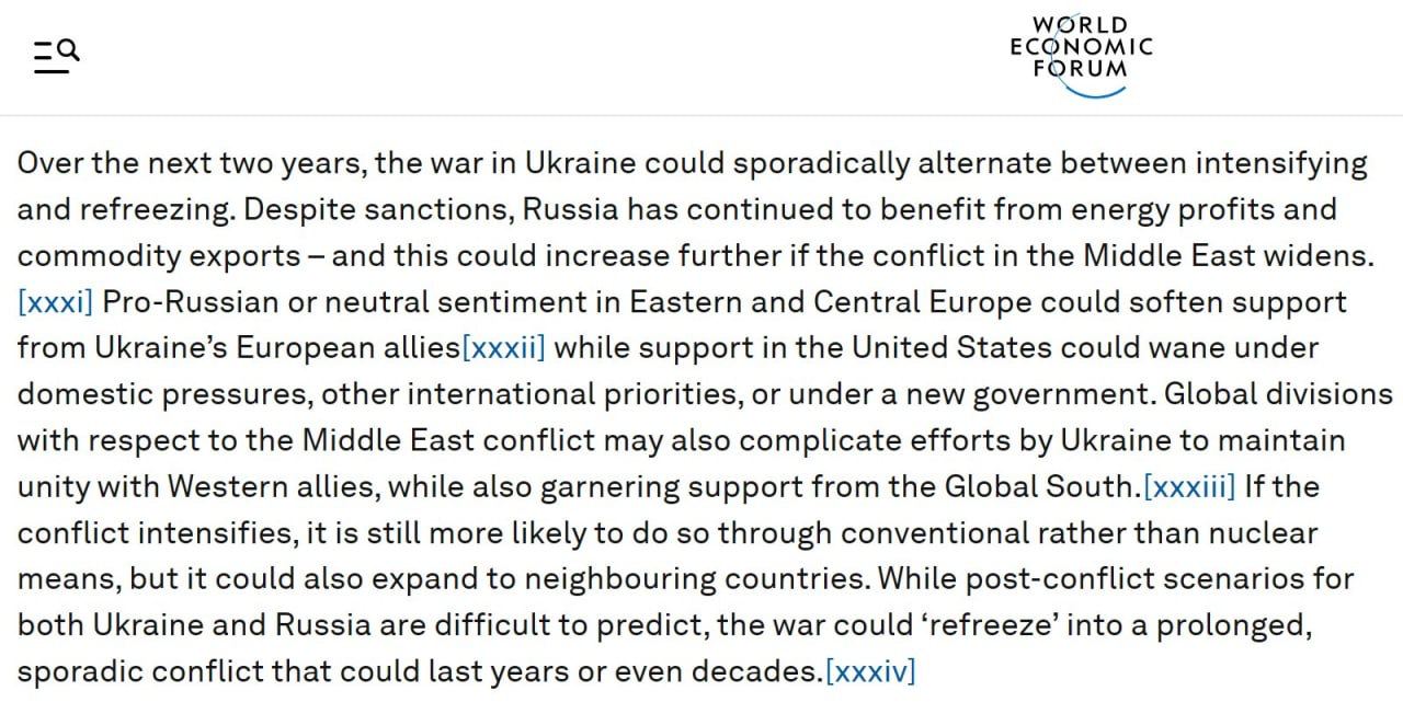 Об этом говорится в докладе форума в Давосе по оценке глобальных рисков на 2024 год