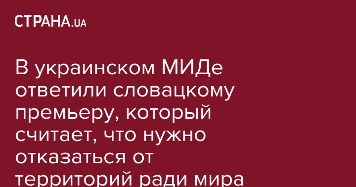 В МИД Украины ответили словацкому премьер-министру Роберту Фицо, который высказал мнение, что Украине нужно отказаться от части своих территорий, захваченных РФ, ради заключения мира.