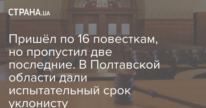 В Полтавской области к испытательному сроку приговорили мужчину, который сначала пришёл на вызов по 16 повесткам, а две последние проигнорировал.
