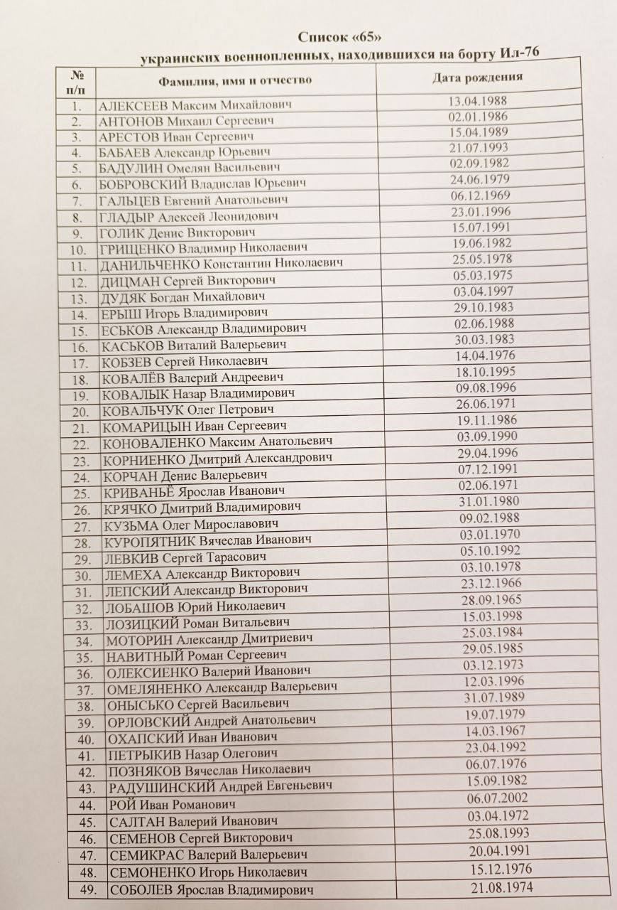 Также главред российской RT Маргарита Симоньян опубликовала, как утверждается, список украинских военнопленных, которые были на борту разбившегося ИЛ-76.