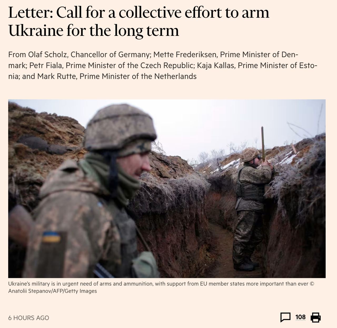 Лидеры Германии, Дании, Чехии, Эстонии и Нидерландов призвали усилить военные поставки Украине - FT