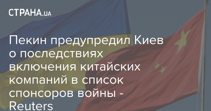 Пекин предупредил Киев о последствиях включения китайских компаний в список спонсоров войны - Reuters