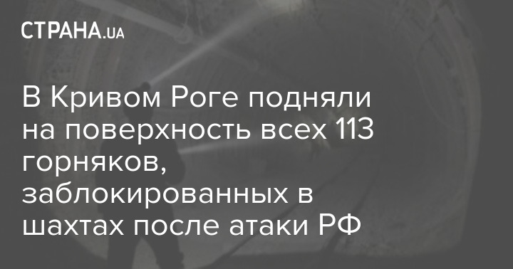 В Кривом Роге подняли на поверхность всех 113 горняков, заблокированных в шахтах после атаки РФ