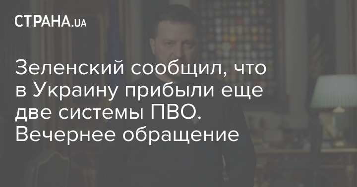 Зеленский сообщил, что в Украину прибыли еще две системы ПВО. Вечернее обращение