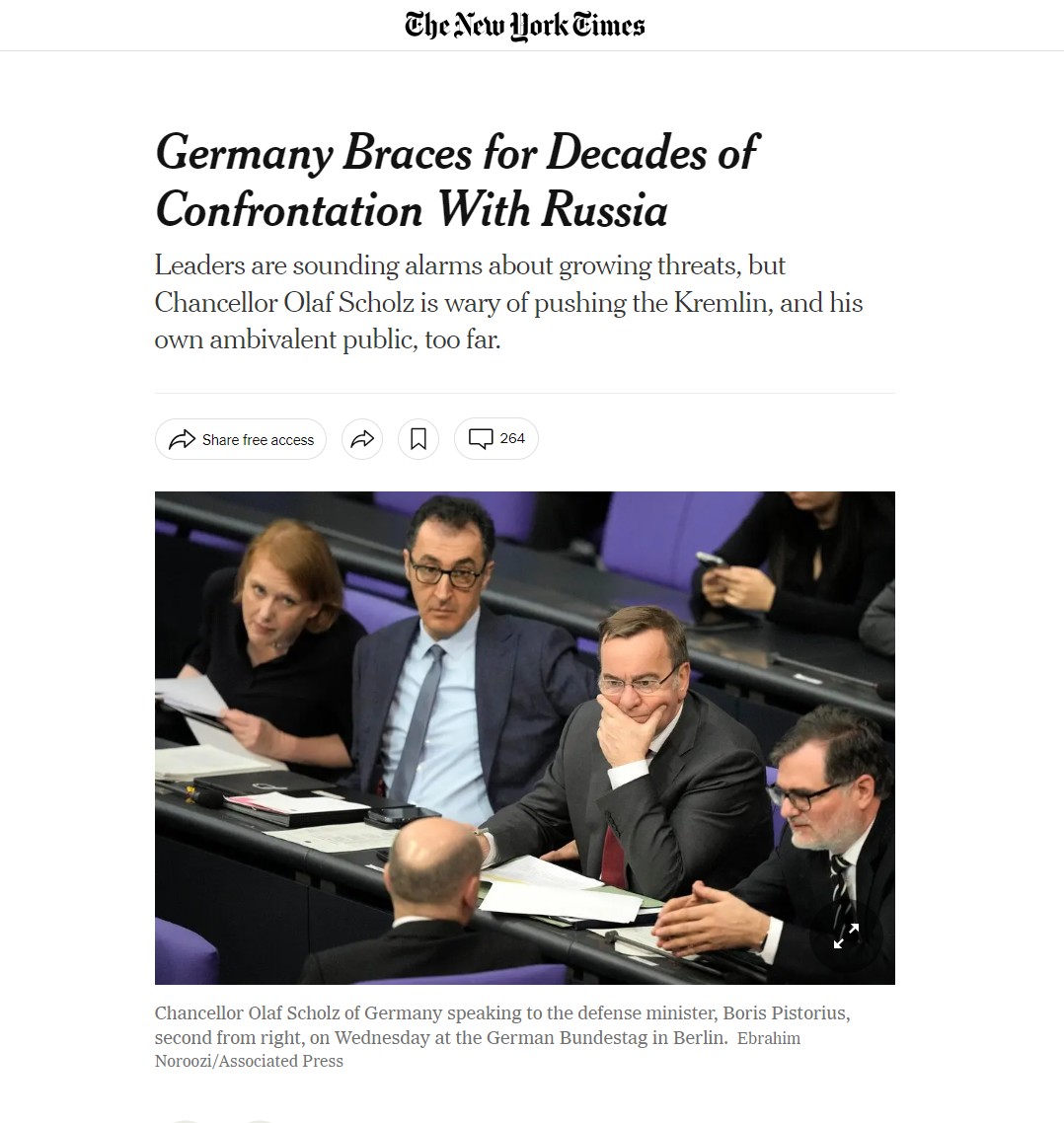 Немецкие официальные лица начинают говорить о возникновении "нового, сложного и тревожного мира, что будет иметь серьезные последствия для европейской и трансатлантической безопасности".