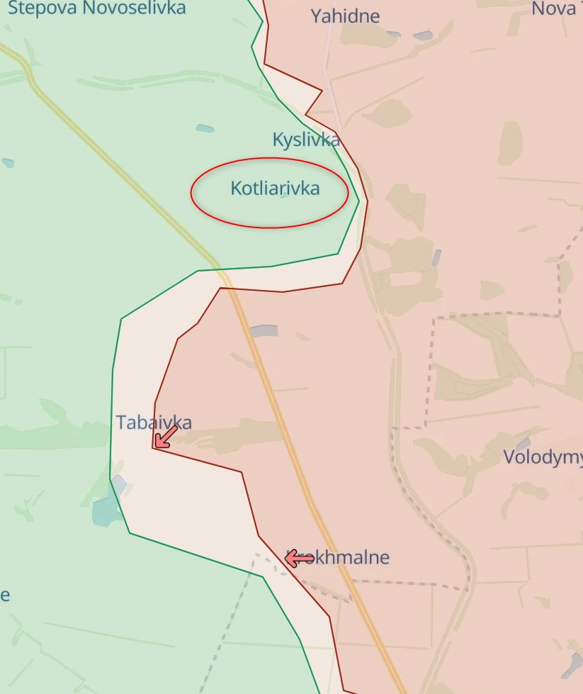 Ближайшая тактическая цель РФ - прорвать оборону украинских войск севернее Табаевки и продвинуться к селу Степная Новоселовка с юга. Что создаст угрозу окружения "Котляровского выступа".