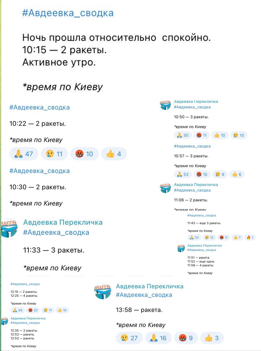 "В частном секторе в Ивушках (район Песчаного карьера, где за минувшие сутки россияне пошли в наступление с двух сторон озера) сейчас головы поднять нельзя. Русские бомбят непрерывно, ФАБами, артиллерией и дронами. Заходят группами по 20 – 30 человек в перерывах между обстрелами. Штурмуют нас зеки, из частей "Шторм". На наши позиции сейчас прилетает больше сотни снарядов за сутки, мы отвечаем максимум 20 выстрелами. Очень тяжело, потери в подразделениях до 40 процентов, но стоим, назад не отходим" - признался сержант ВСУ из Авдеевки.