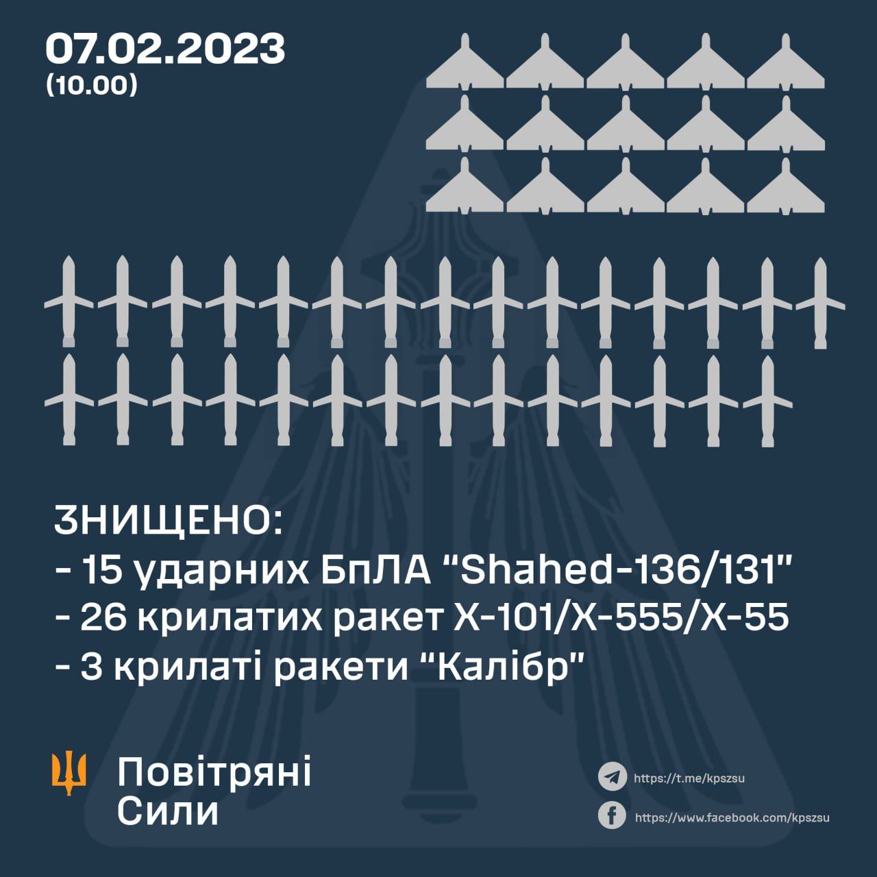 10.07 ВСУ сбили 29 ракет из 44 и 15 дронов из 20, сообщают Воздушные силы.
