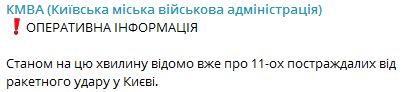В Киеве сообщают об 11 пострадавших после ракетного удара