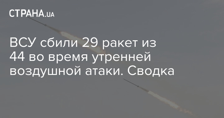ВСУ сегодня утром сбили 29 ракет из 44 и 15 дронов из 20.