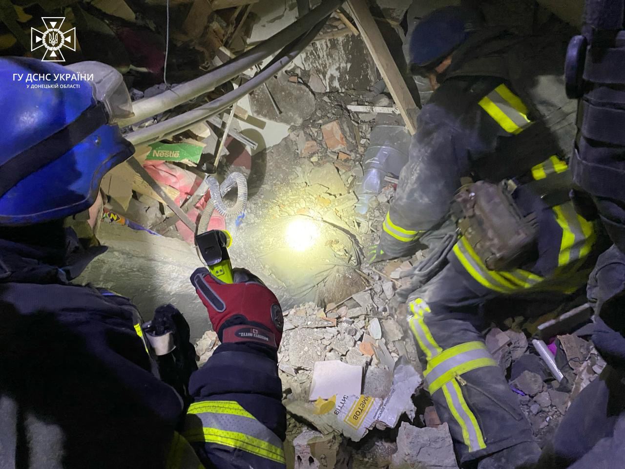 09:51 В Селидово из-под завалов разрушенного трехэтажного жилого дома спасли трех человек.