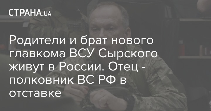 Родители и брат нового главкома ВСУ Александра Сырского до сих пор живут в России, а его отец - полковник ВС РФ в отставке, а ныне пенсионер.