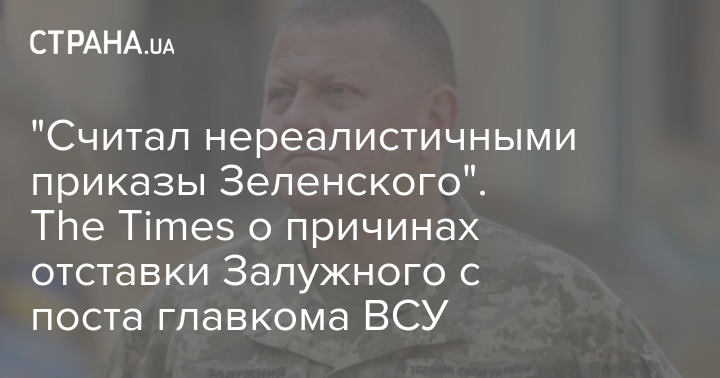 "Считал нереалистичными приказы Зеленского". The Times о причинах отставки Залужного с поста главкома ВСУ