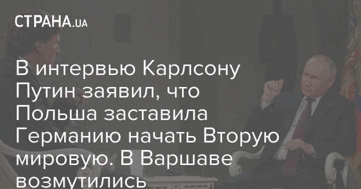 В интервью Карлсону Путин заявил, что Польша заставила Германию начать Вторую мировую. В Варшаве возмутились
