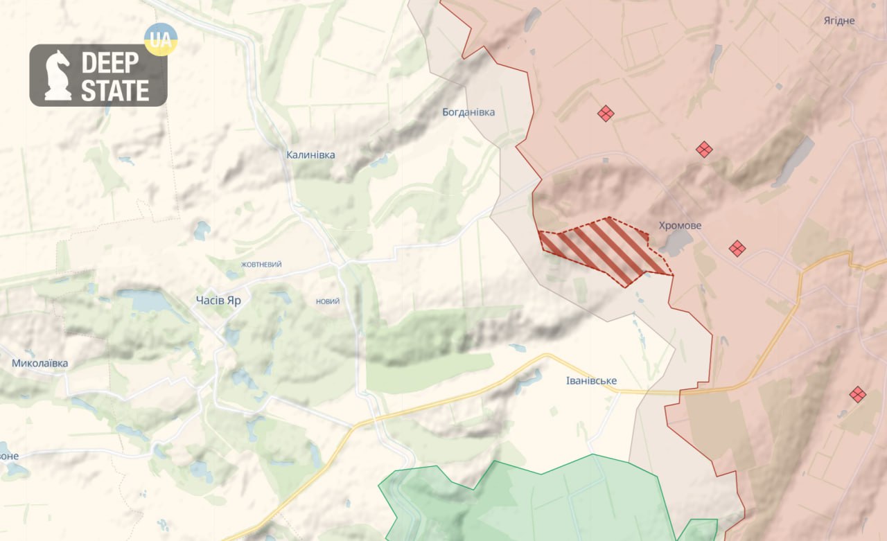 К другим участкам фронта. Украинский паблик Deep State сообщает, что россияне продвинулись севернее Ивановского под Бахмутом.