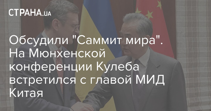 На Мюнхенской конференции глава МИД Украины Дмитрий Кулеба встретился с китайским коллегой Ван И. Они обсуждали "Саммит мира", который Украина хочет собрать в Швейцарии.