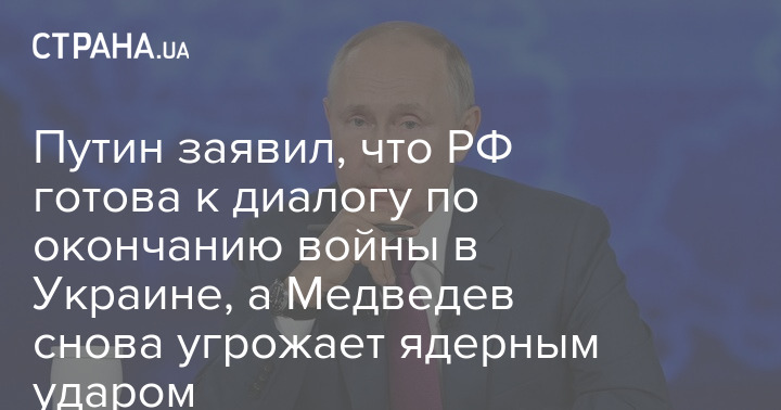 Путин заявил, что РФ готова к диалогу по окончанию войны в Украине, а Медведев снова угрожает ядерным ударом