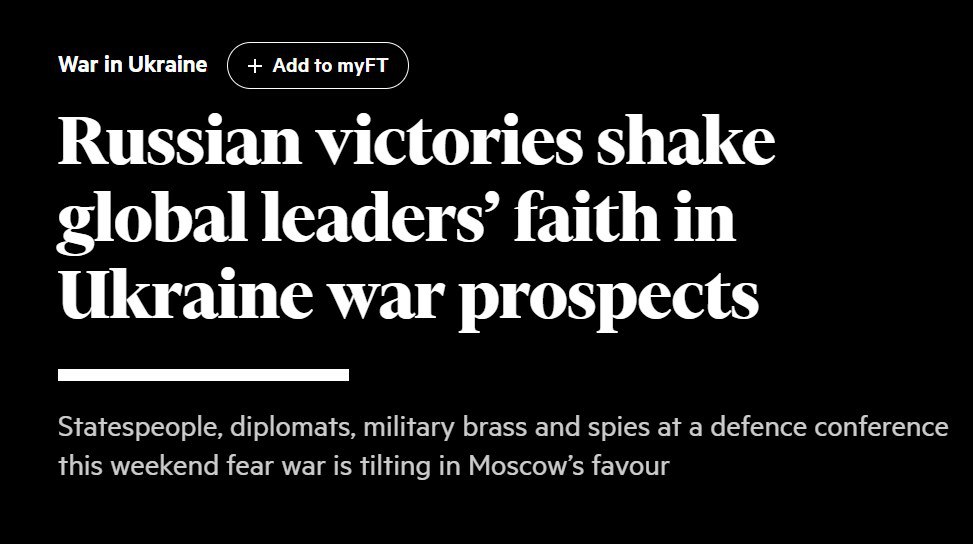 09.13 "Победы России пошатнули веру мировых лидеров в перспективы войны в Украине", - пишет Financial Times по итогам Мюнхенской конференции по безопасности.