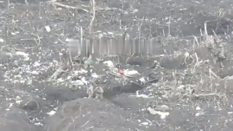 На кадрах видно, как два безоружных украинских военных выходят из окопа и падают после выстрелов российских солдат.
