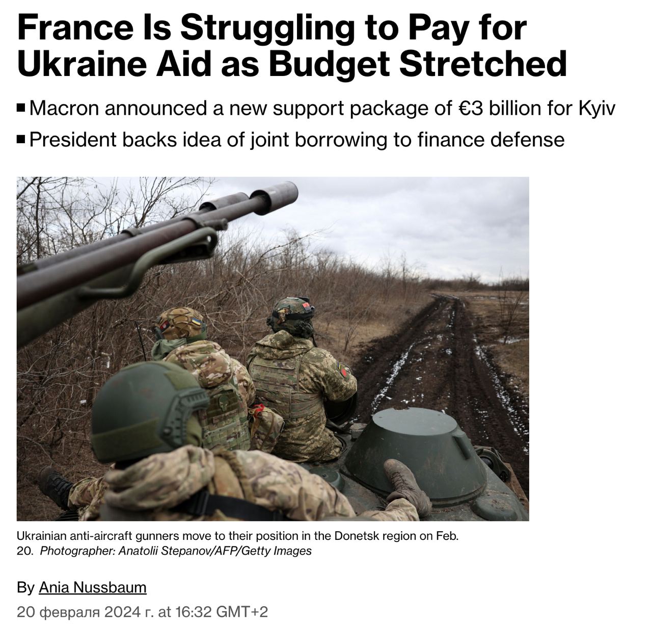 У Франции возникли трудности с оплатой обещанной Украине помощи на три миллиарда евро из-за ограниченного бюджета.
