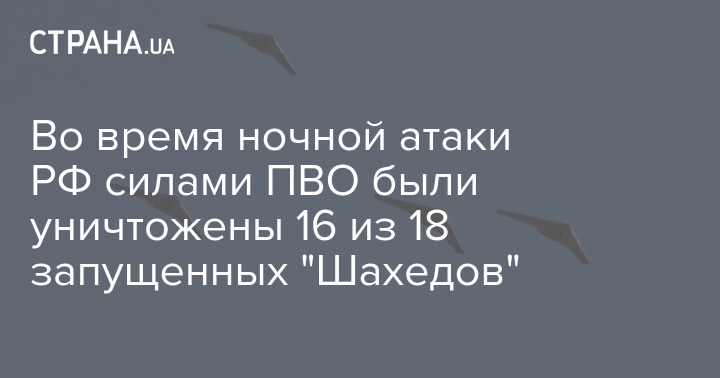 Сегодня ночью российские войска атаковали Украину 18-ю ударными БпЛА типа "Shahed", из которых 16 были уничтожены.