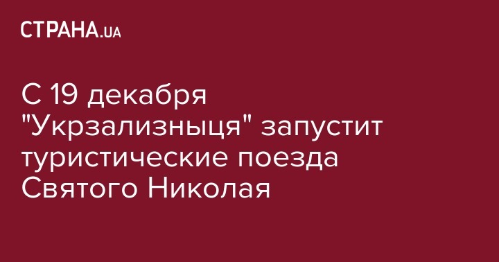 С завтрашнего дня, 19 декабря, в Киеве, Харькове и Львове будет курсировать праздничный поезд Святого Николая, сформированный из паровоза и вагонов с местами для сидения. Об этом сообщает пресс-служба "Укрзализныци" на странице в Facebook.