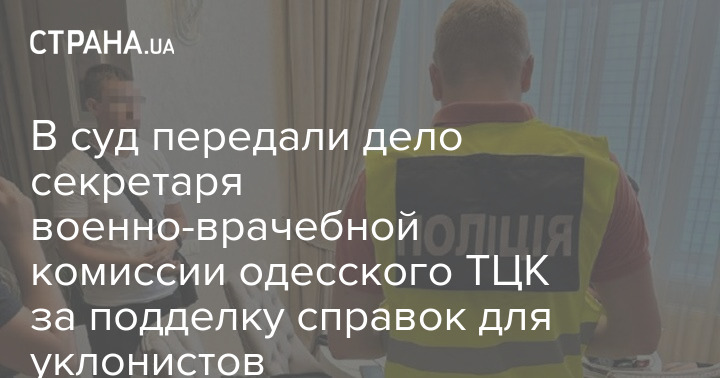 В суд передали дело секретаря военно-врачебной комиссии одесского ТЦК, который, по версии обвинения, за 10 тысяч долларов подделывал для уклонистов выводы о непригодности к военной службе.