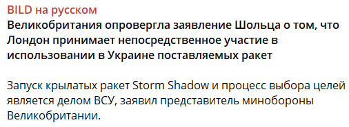 Великобритания опровергла заявление канцлера Германии Олафа Шольца о том, что Лондон принимает непосредственное участие в использовании в Украине поставляемых ракет.