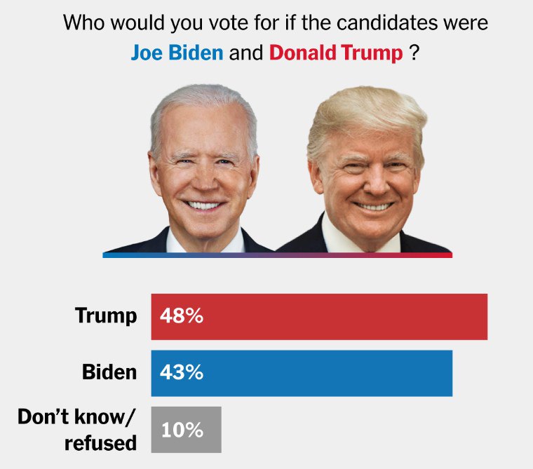 Трамп опережает Байдена на 5% в гипотетическом матче-реванше - NYT