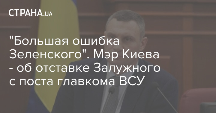 Мэр Киева Виталий Кличко считает большой ошибкой президента Украины Владимира Зеленского снятие Валерия Залужного с поста главнокомандующего ВСУ.