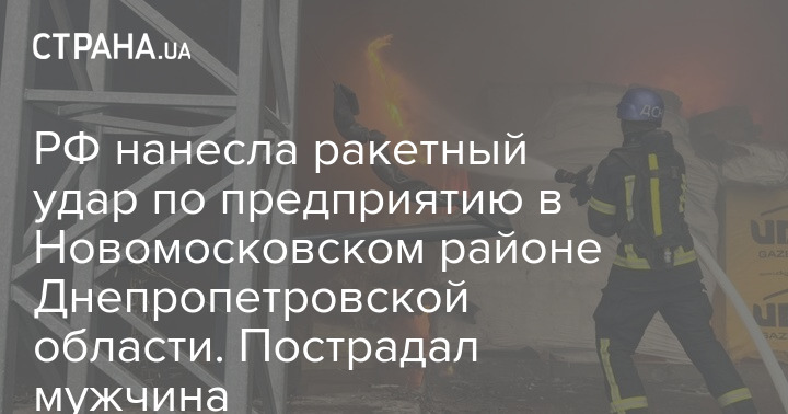 Сегодня ночью россияне нанесли ракетный удар по предприятию в Новомосковском районе Днепропетровской области. В результате пострадал мужчина.
