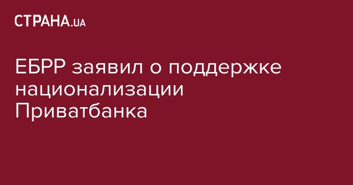 Европейский банк реконструкции и развития (ЕБРР) полностью поддерживает национализацию "Приватбанка", считая это защитой вкладчиков банка. Об этом заявил президент ЕБРР Сумы Чакрабарти, передает 112 Украина.