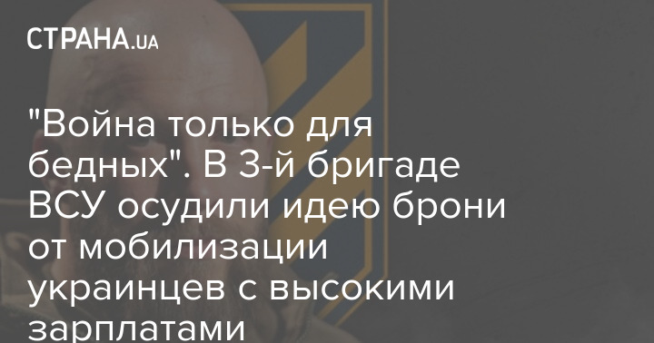 "Война только для бедных". В 3-й бригаде ВСУ осудили идею брони от мобилизации украинцев с высокими зарплатами