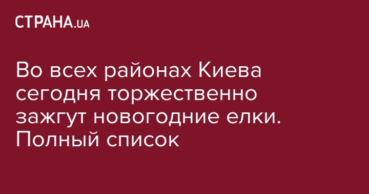 Во всех районах Киева сегодня торжественно зажгут новогодние елки. Полный список