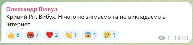 18.40 Сообщают о взрыве в Кривом Роге. В регионе объявлена тревога.