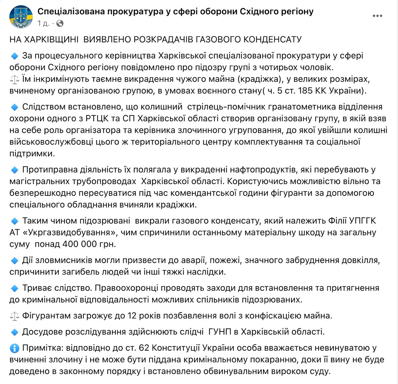 В Харьковской области сотрудники районного ТЦК воровали газовый конденсат из магистральных трубопроводов, пользуясь тем, что могут передвигаться во время комендантского часа.
