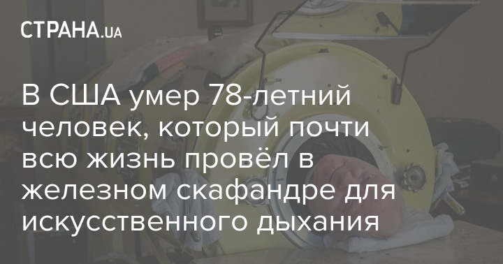 В Соединённых Штатах скончался 78-летний Пол Александер, который провёл почти всю свою жизнь в специальном аппарате искусственного дыхания.