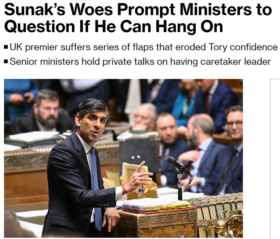 По информации источников агентства, члены партии тори начали обсуждать, сможет ли временный лидер справиться с ростом оппозиционной Лейбористской партии. Это обсуждение было вызвано "серией политических интриг", которые, кажется, выявили неспособность Сунака принимать быстрые политические решения.