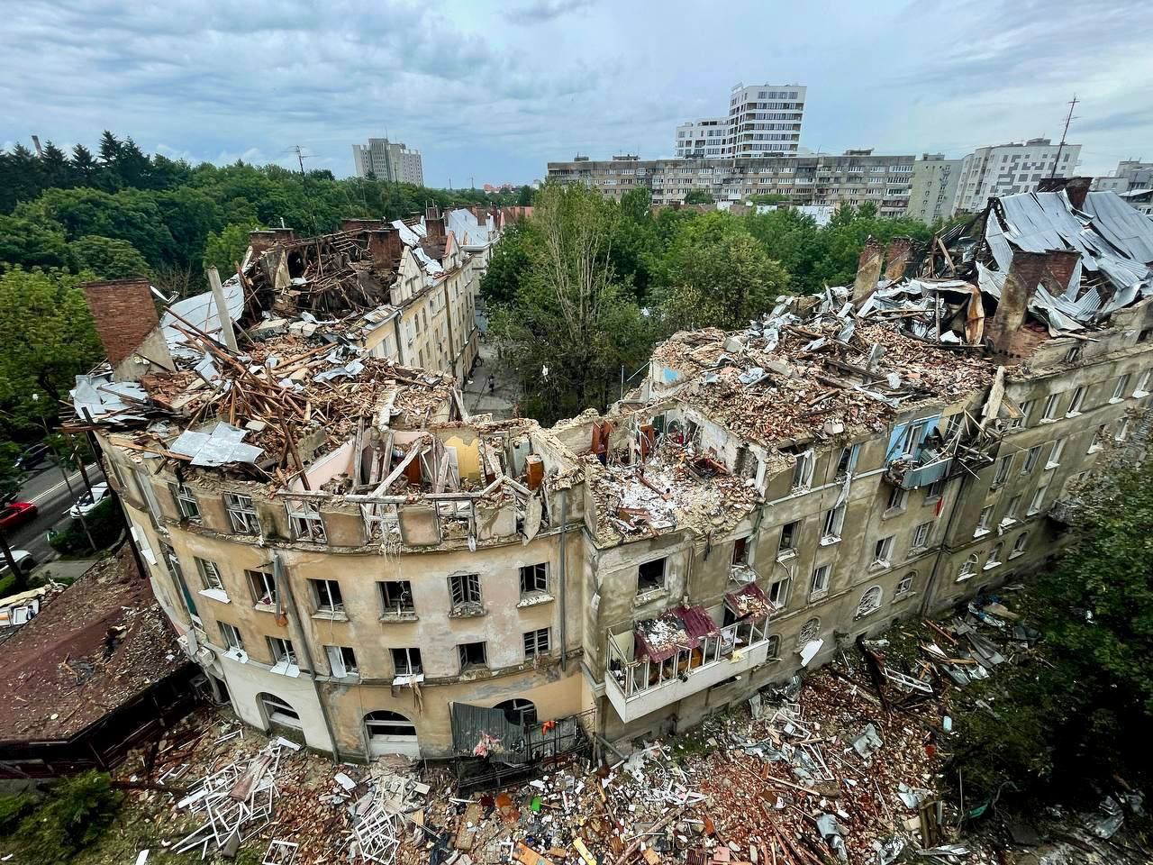 "В результате удара уничтожены помещения общежития и помещения пункта экстренной медицинской помощи. Повреждены помещения Золочевской больницы. Уничтожены 2 автомобиля бригады скорой, 2 частично повреждены. Без пострадавших", – написал глава ОВА.