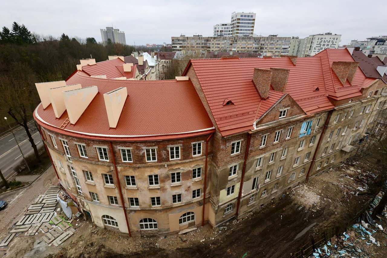 Стены, крыши, перекрытия, двери и окна уже восстановлены. На очереди - фасадные работы и ремонт в квартирах.
