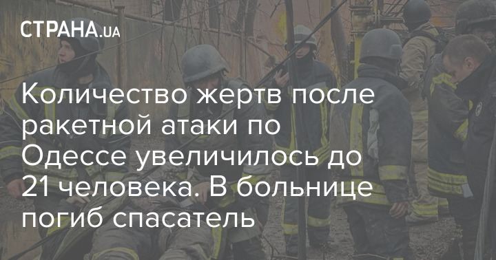 В Одессе увеличилось количество погибших после вчерашнего ракетного удара. В больнице погиб ещё один спасатель, он стал 21 погибшим.
