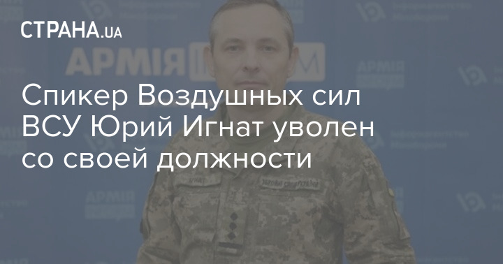 Спикер Воздушных сил ВСУ Юрий Игнат уволен со своего поста.