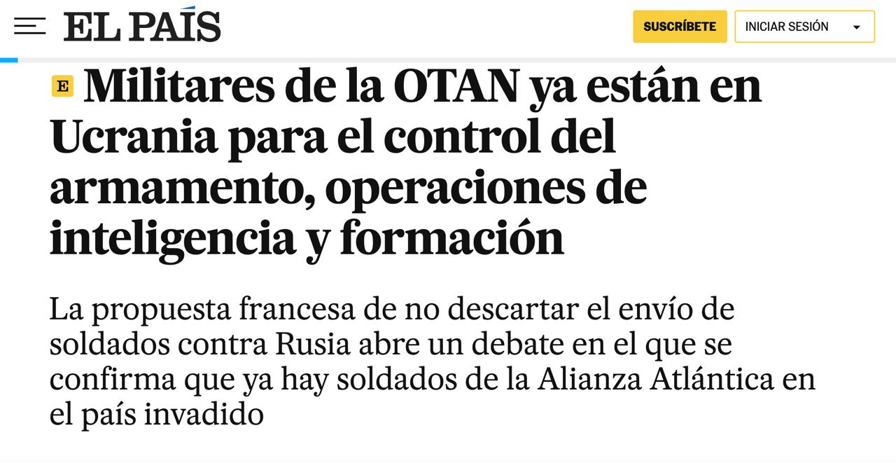 13.40 Солдаты НАТО уже находятся в Украине для контроля над вооружениями, разведывательных операций и обучения, пишет El Pais со ссылкой на источники.